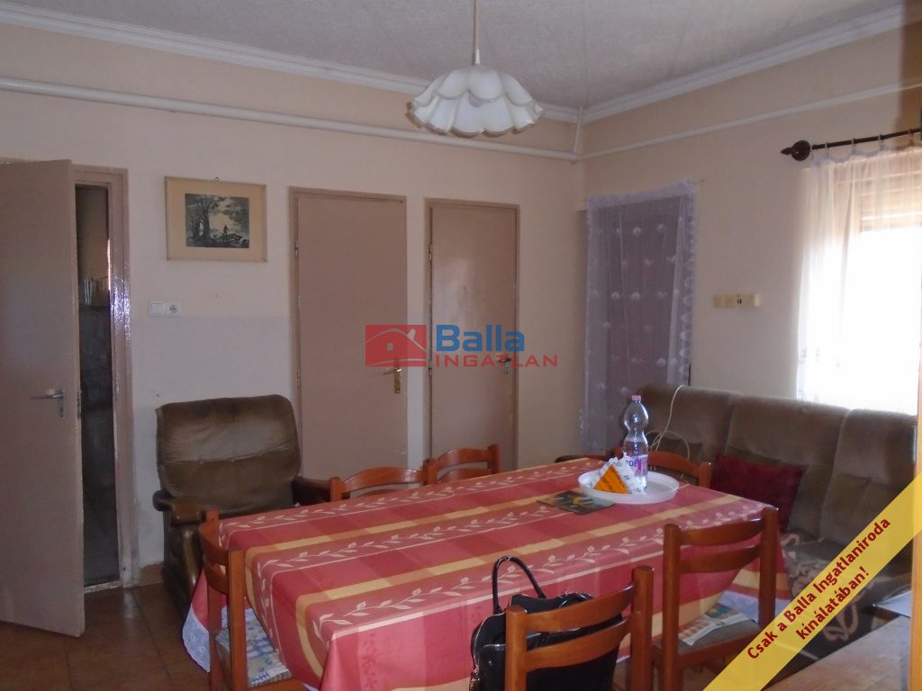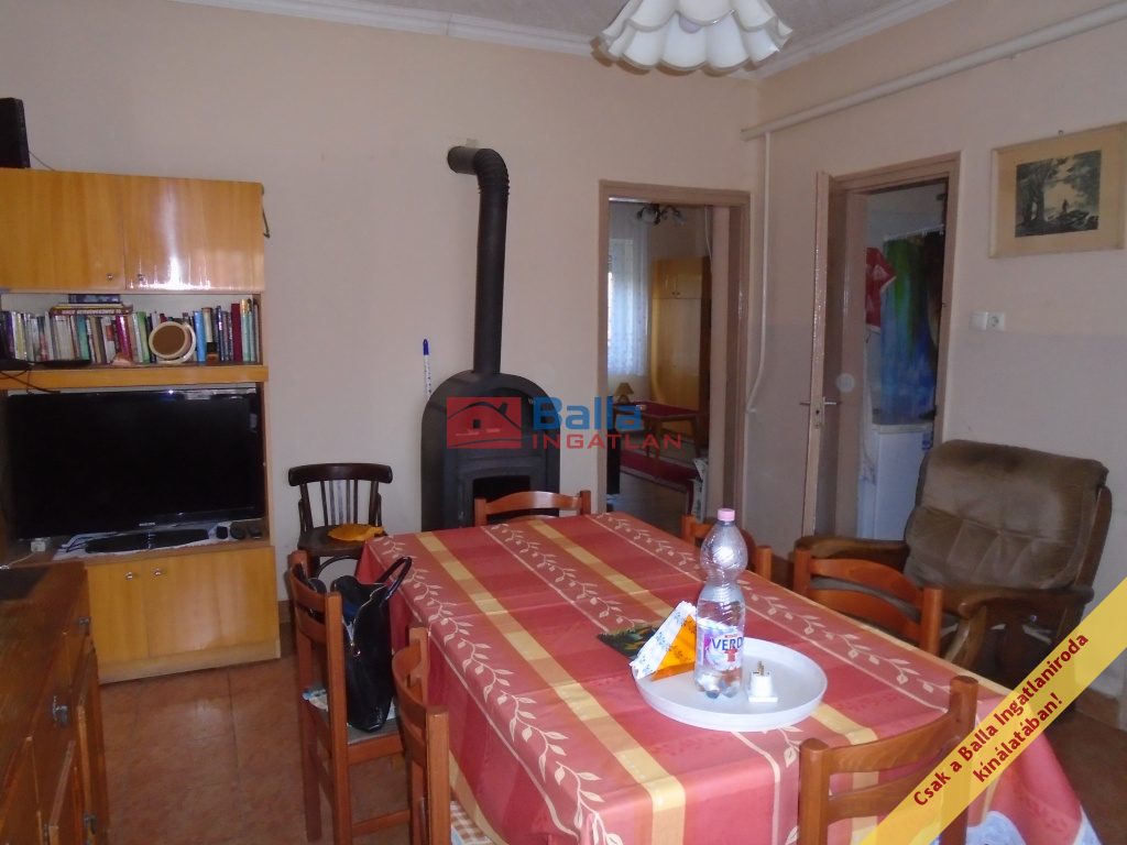 A szabályosan körbekerített, 523 m2 nagyságú telken, nappali-étkező, konyha, spejz, fürdőszoba, külön WC, előszoba, 2 különnyíló hálószoba tagolású, 70 m2 hasznos alapterületű, rendkívül jó elrendezésű, otthonos főépületet találunk. A ház beton alapra vályogtéglából épült és cserépfedést kapott. A födém felújítása 2023-ban történt. Az épület külső nyílászárói részben cserélve lettek, ezek redőnnyel és szúnyoghálóval vannak felszerelve. Komfortérzetünkről télen gáz,- illetve vegyestüzelésű kazán, nyáron pedig klímaberendezés gondoskodik. Fűtés tekintetében kiváló alternatíva a nappali-étkezőben elhelyezett kandalló is. Az épület Déli fekvésű, körbenapozott, világos. A melléképületi részben kerültek elhelyezésre a kazánok, melyek radiátoros hőleadást biztosítanak, a melegvíz ellátásról gondoskodó villanyboyler pedig a fürdőben található.