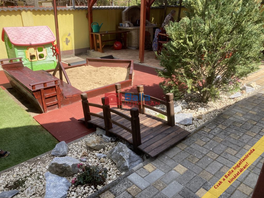 A kertben több szabadidős tevékenység is rendelkezésre áll: jakuzzi, kerti óriás sakk, kerti sütögető ( 8 személyes szaletlivel), gyermekeknek homokozó, stb. Az udvar részben térkövezett, igényes, rendezett!
