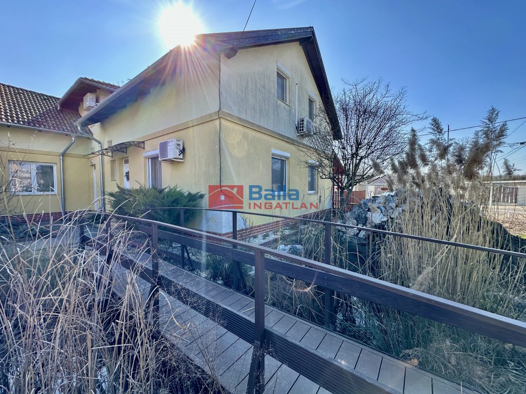 A ház Ytong téglából épült, 4 lakásos, külső hőszigeteléssel ellátott társasház egyik házrésze. A nyílászárók műanyagok, redőnnyel és szúnyoghálóval felszereltek. A biztonságról kiépített kamera- és riasztórendszer gondoskodik.