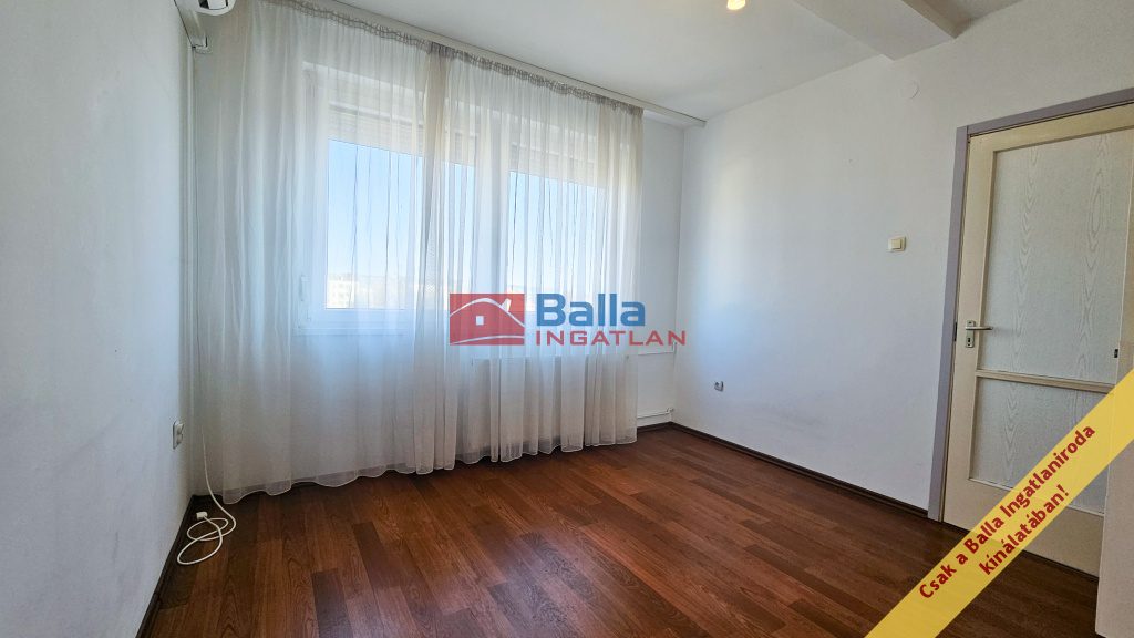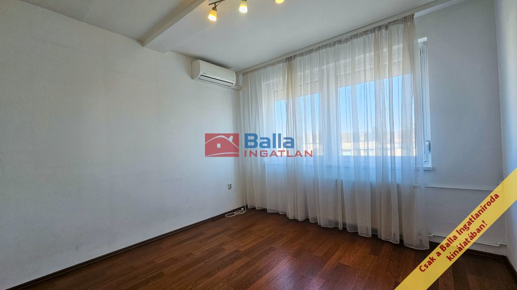 A szobákban laminált padló található. Az ablakok 6 éve beépített műanyag, kétrétegű üvegezéssel ellátottak, melyek redőnnyel és szúnyoghálóval is felszereltek. A hálószobaként használt, kisebbik szobában split klíma került beszerelésre, mely a hűtési és fűtési funkciót is ellátja, így a lakás komfortos hőmérséklete minden évszakban biztosított. A bejárati ajtó több ponton záródó biztonsági ajtó.