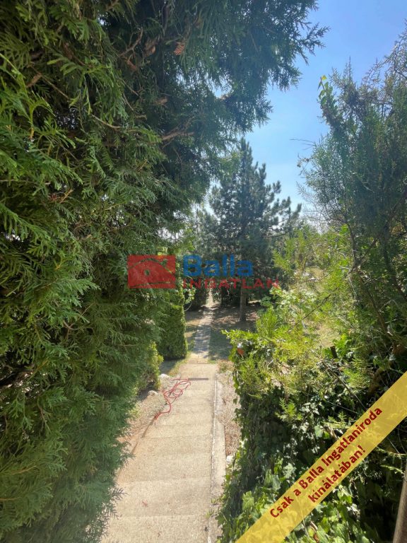 Az enyhén emelkedő 760 m2-es teleken elhelyezett épület a dombtetőn található melynek köszönhető pazar a kilátás a Dunakanyarra. A kert gondozott, rengeteg fenyővel, bokorral tarkított mely a nyári melegben a hűsítő árnyékot biztosítja.