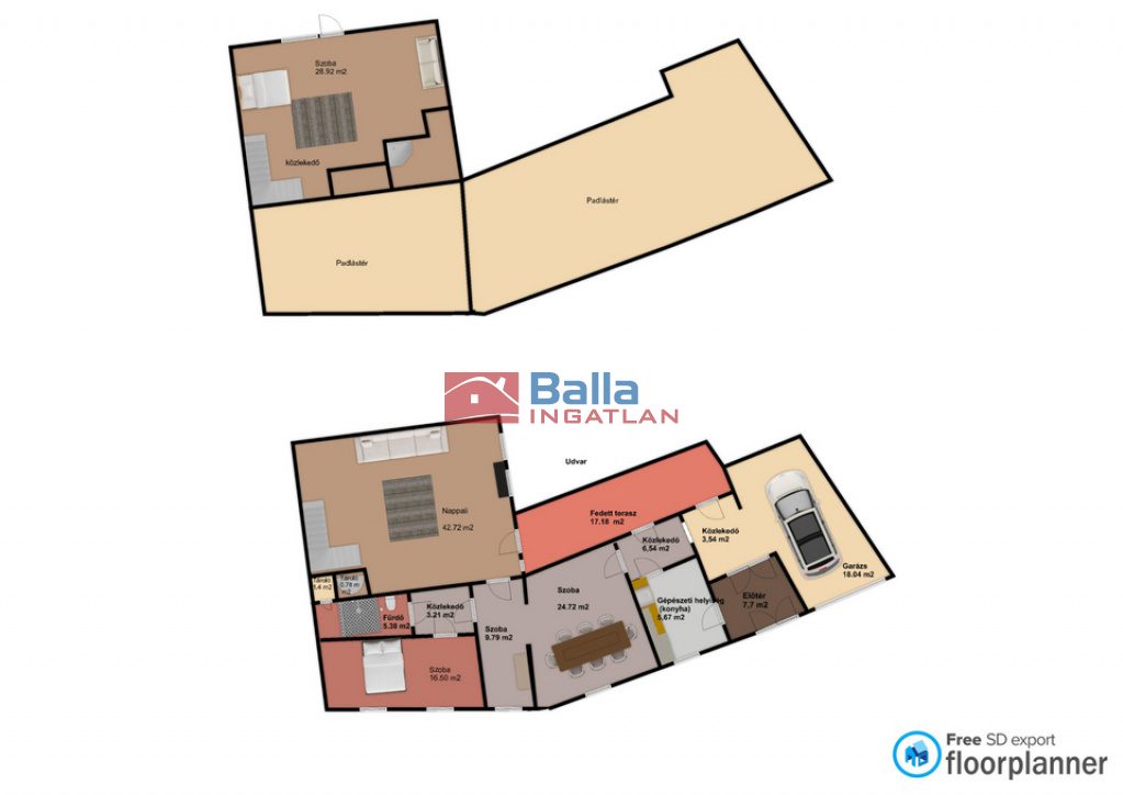 • Tetőtér Beépített