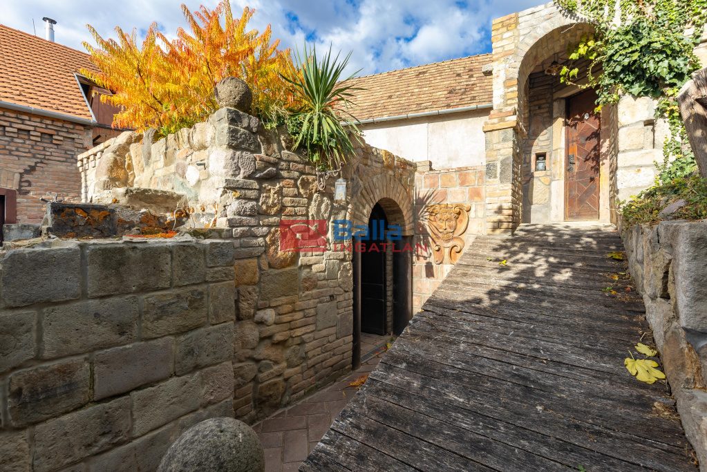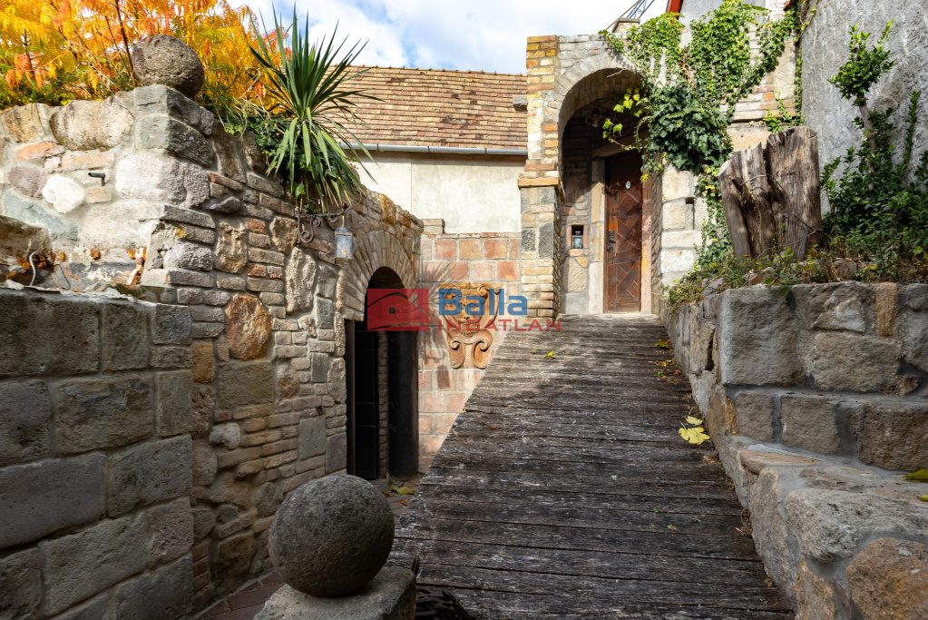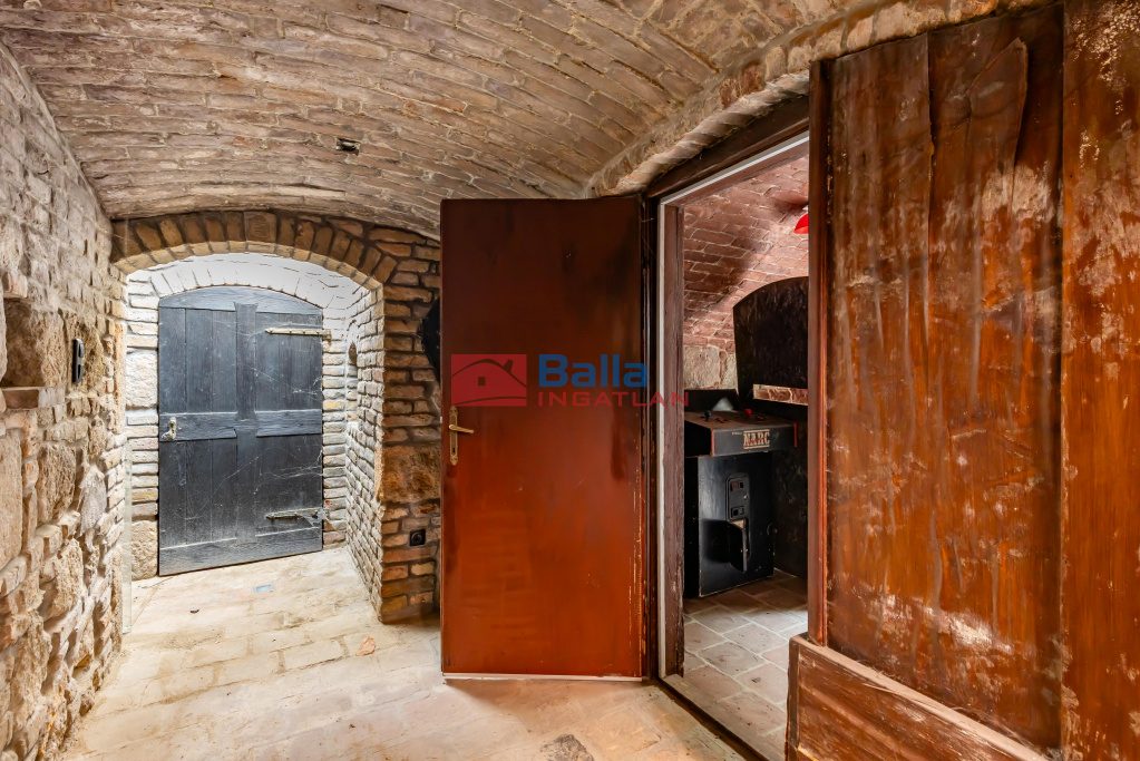 Az ingatlan egyediségét a terméskővel, illetve szeletelt téglával kirakott kertje, valamint az épület alatt húzódó 65 m2-es pince fokozza. A pince annak idején privát szórakozóhelyként működött. Megközelíthető a kertből, továbbá egy rejtett lépcsőn keresztül a nappaliból is.