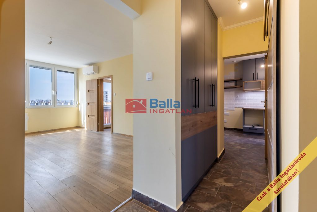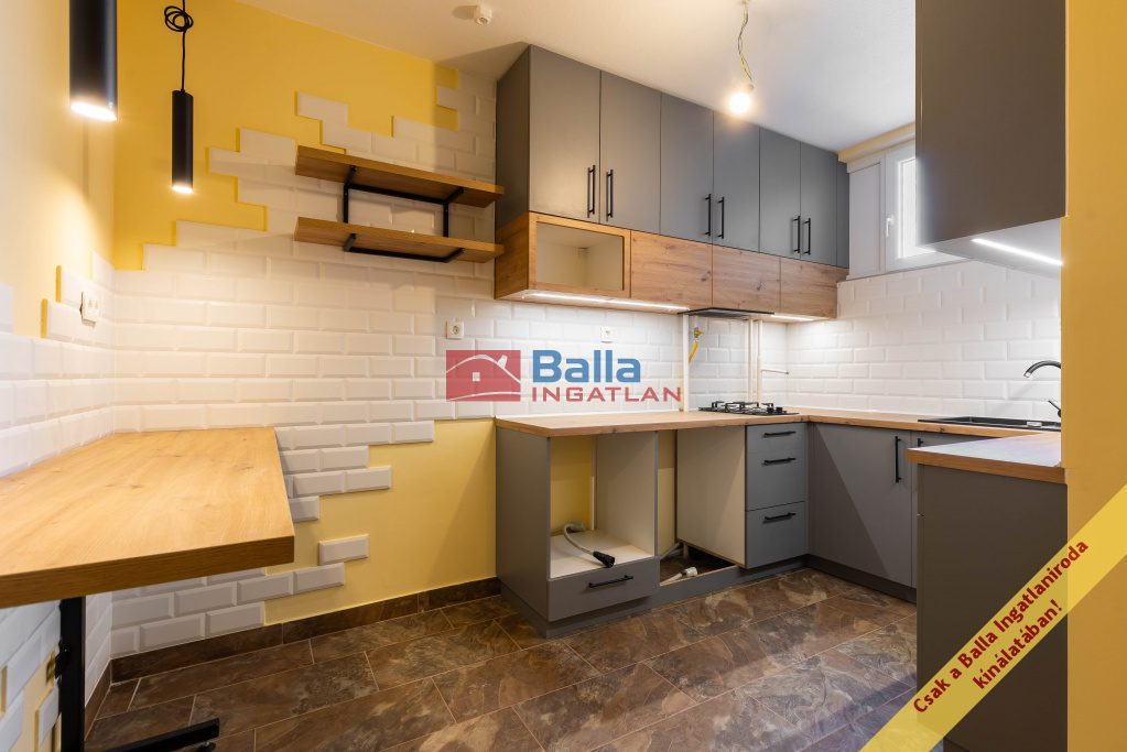 A lakás 2026-ban teljes körű felújításon esett át, így új tulajdonosa egy valóban friss, modern állapotú otthonba költözhet. A munkálatok során megújult a villanyhálózat is, amely 1×25A-es áramellátással működik. Minden helyiség új burkolatokat kapott, új beltéri ajtók kerültek beépítésre, valamint teljesen felújították a fürdőszobát is. A konyhában új, esztétikus konyhabútor került kialakításra.