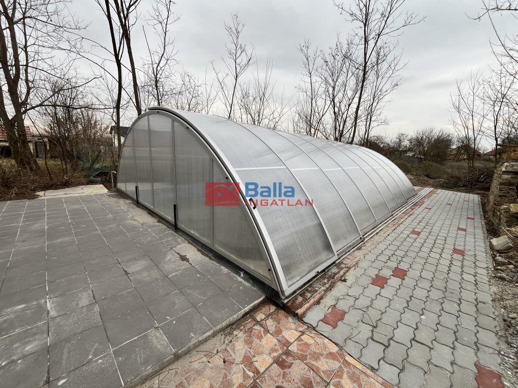 A kertben egy 6x8 m-es szigetelt, 70 cm mély medence van, mely uv álló nyitható polikarbonát fedéssel ellátott.
