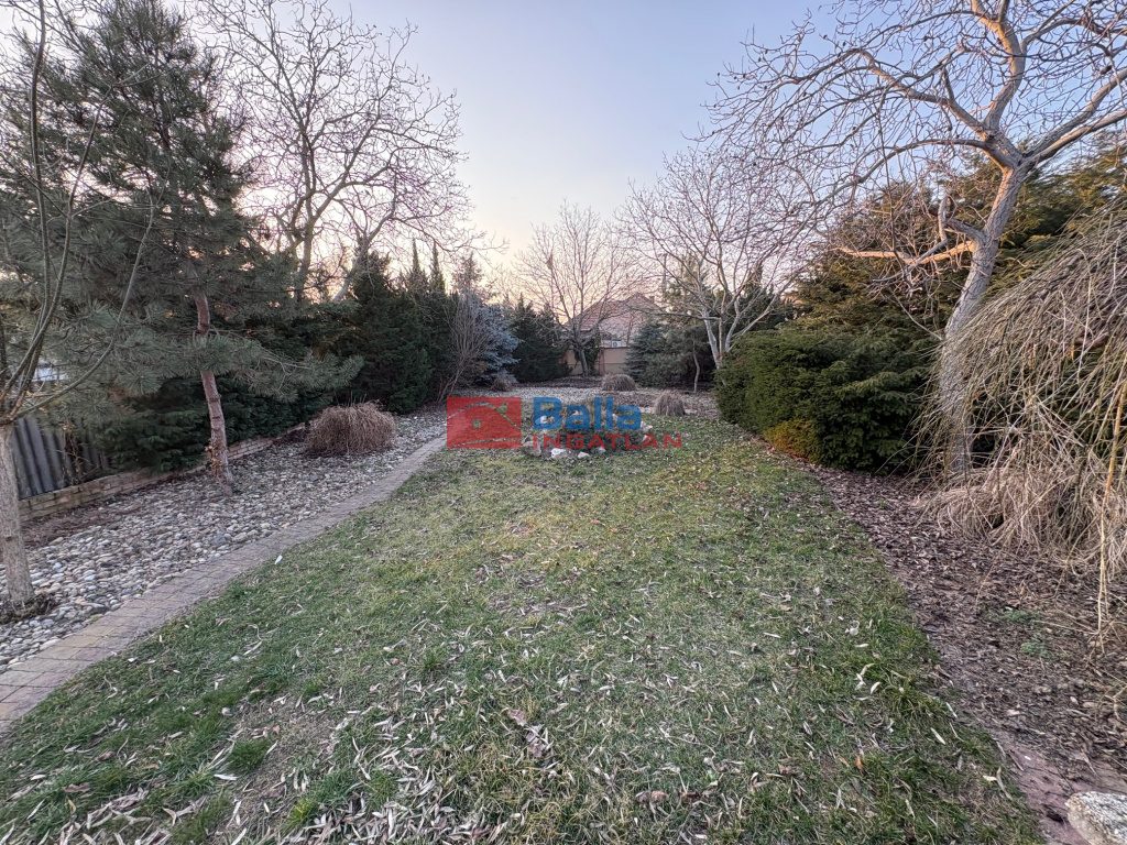 Nagyméretű hátsó kert, többfajta ősfával, kiépített öntözőrendszerrel.