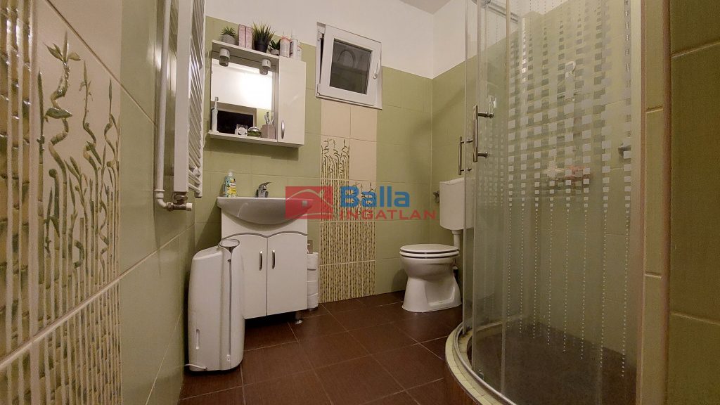 - 2 fürdőszoba, zöld illetve barna árnyalatú fali-csempékkel, jó