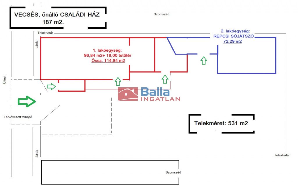 Bejárás: telek közepén, kiskapu-nagykapu külön.