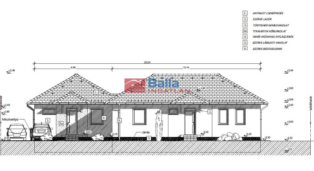 Modern megjelenés: Fehér falak és burkolatok - fekete terrán cserép, színezett bádogozással (választási lehetőség hideg és meleg burkolatoknál)