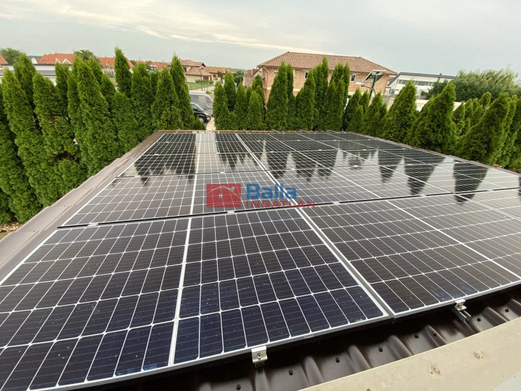 e) 5 KW-os napelemrendszer, betáplálással, amely biztosítja a ház, a kert, a medence és 2 db elektromos autó áramellátását