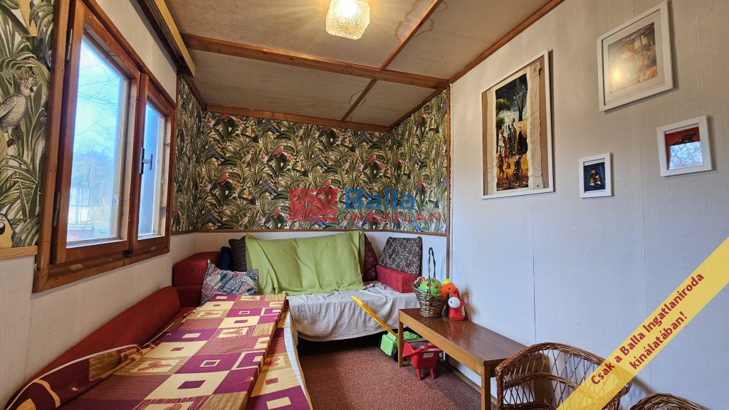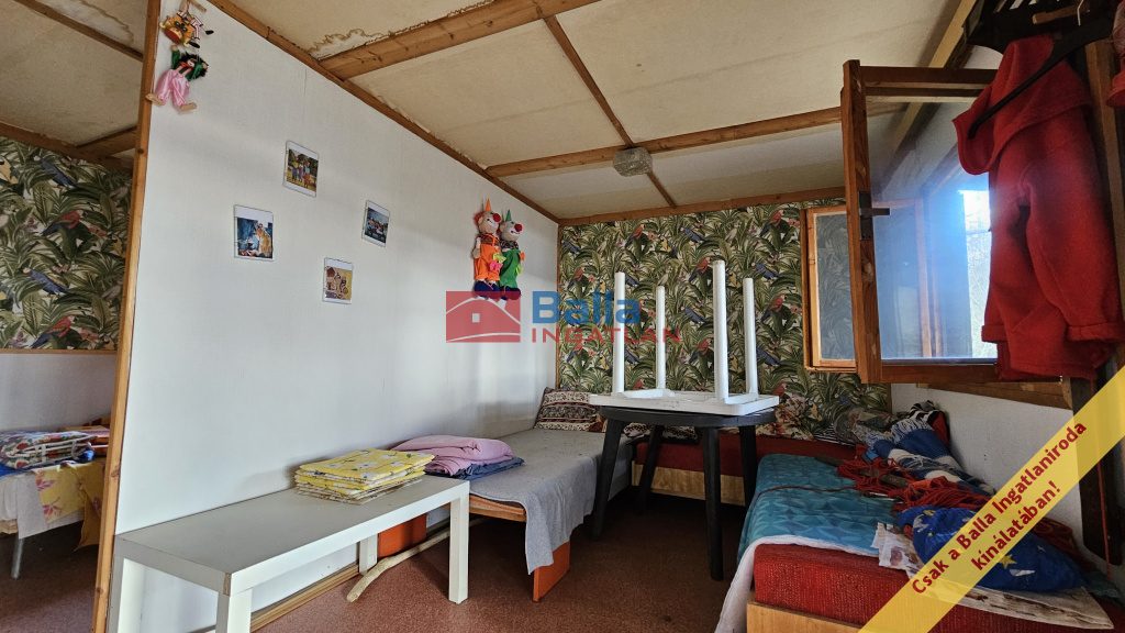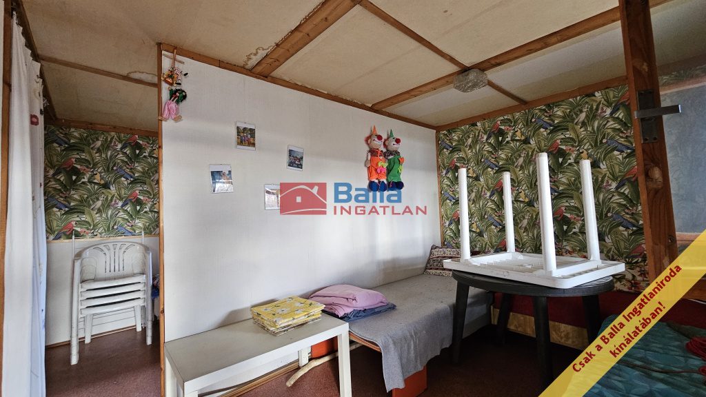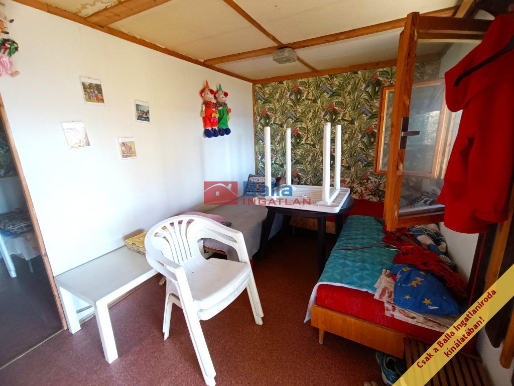 A ház az 80-as években épült, könnyűszerkezetes kivitelben, jó állapotban van. A villany bevezetésre került. A telken található továbbá egy kis tárolóépület, valamint kerti WC is. A fürdőszobában jelenleg nincs bevezetve a víz, de fúrt kútról ez is megoldható.