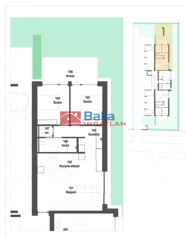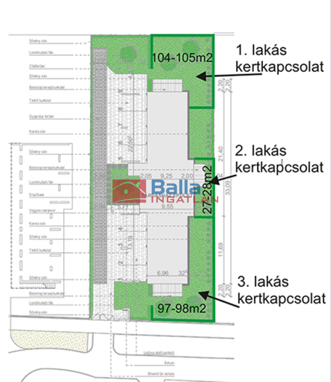1. lakás: 78,71 nm 66,71nm + 12nm terasz+ 104nm kertkapcsolat: 144.194.810.-Ft