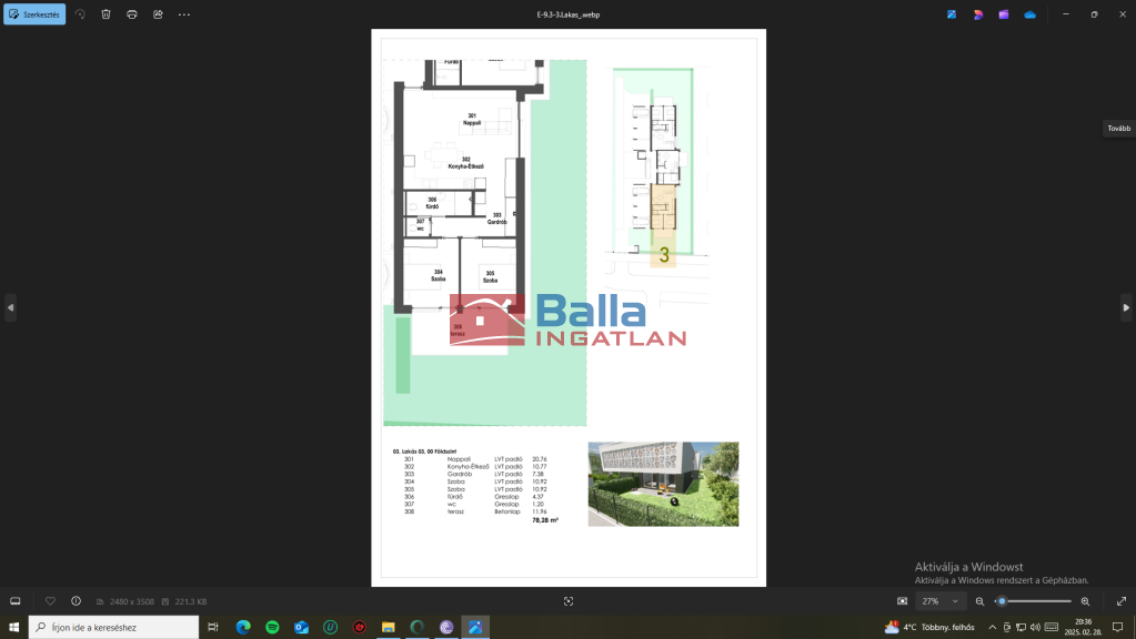 3. lakás: 78,28 nm 66,71nm + 11,57nm terasz+97nm kertkapcsolat: 143.594.810.-Ft