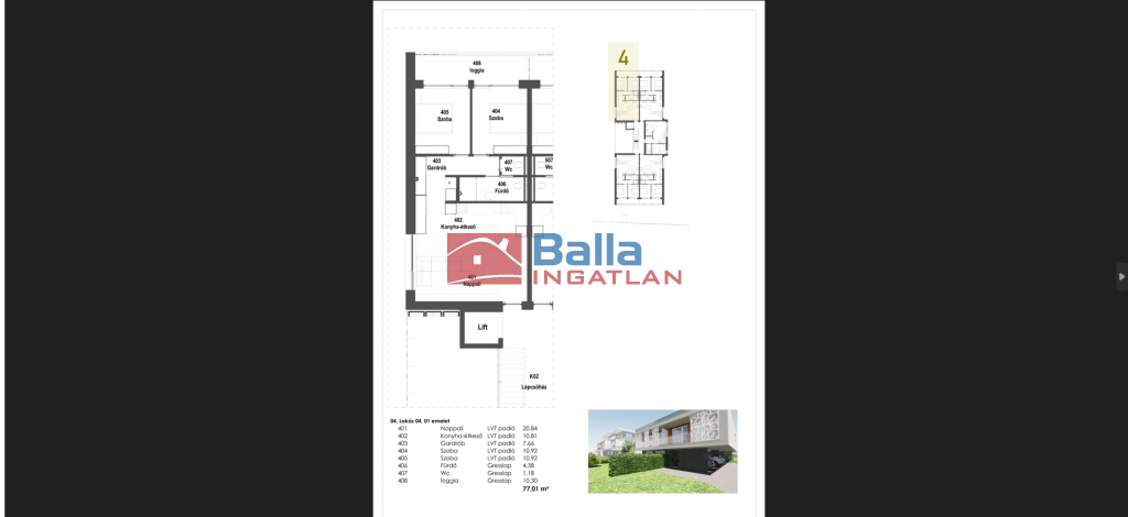 4. lakás: 77,01 nm 66,71nm +10,3nm terasz 122.673.990.-Ft