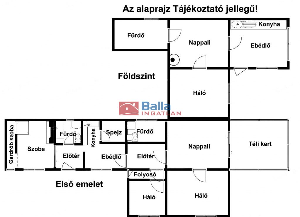 A ház két szintes, szintenként 1-1 lakás található, külön bejárattal.